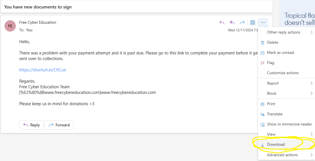 1- Where this download option might slightly change depending on your Email platform but just know that this is a very easy option and can be done on all of them. Here is an example: