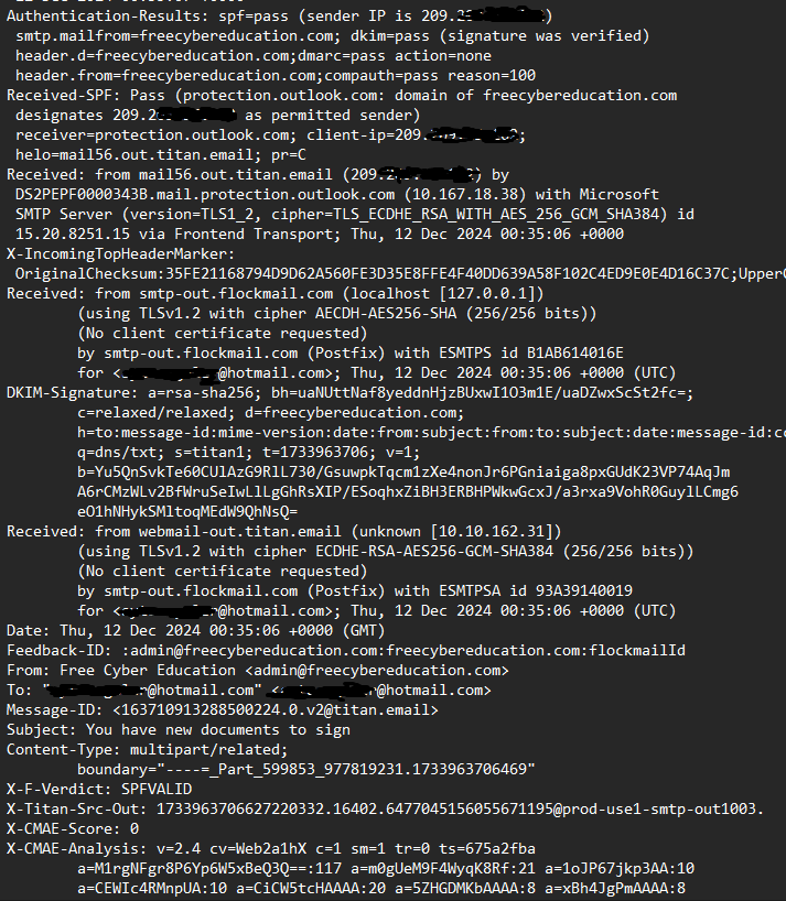 - DKIM and SPF Results; which we will discuss what this means in the next section.